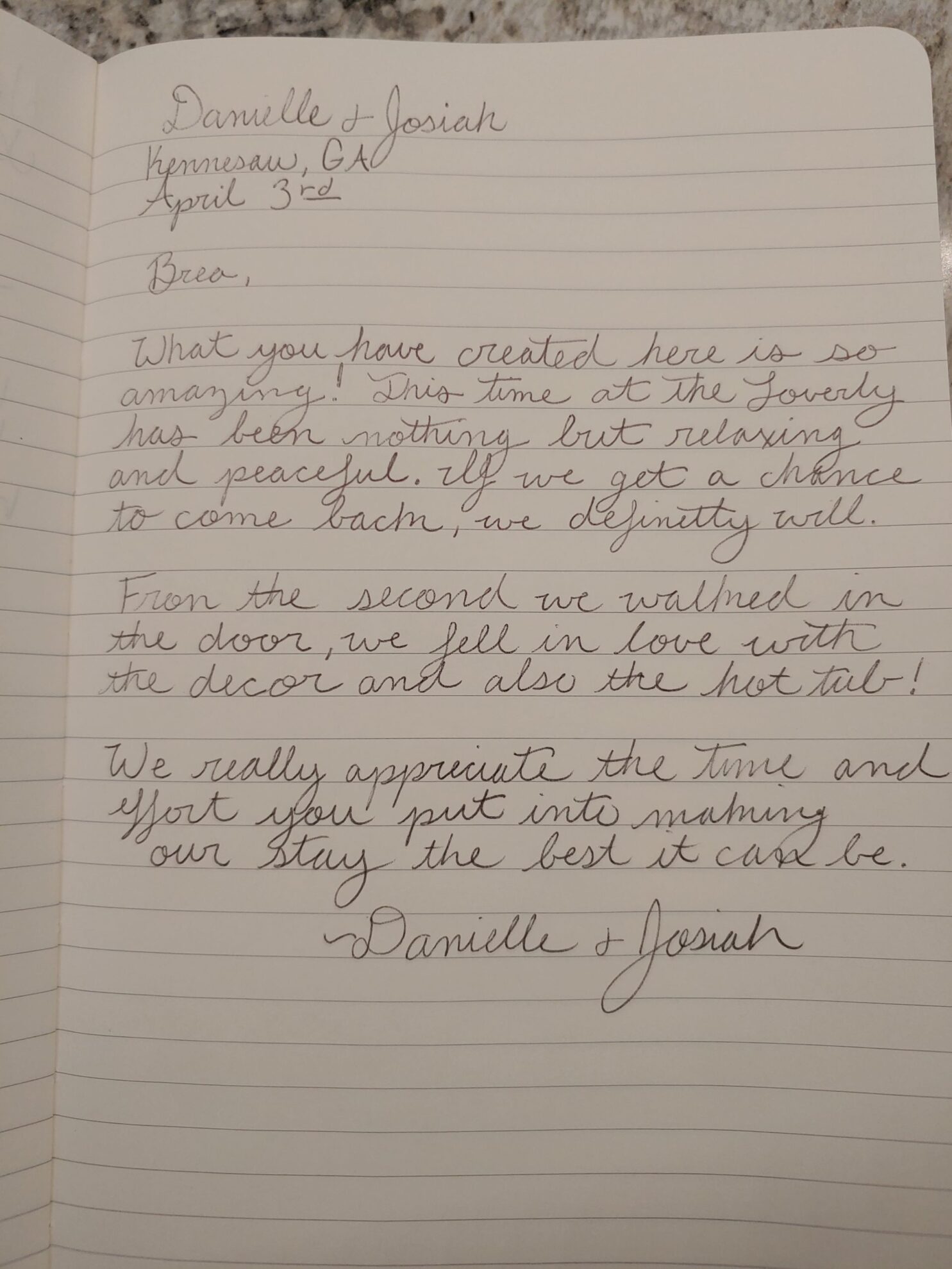 We celebrated our 40th anniversary at the Loverly, and couldn’t have picked a more perfect setting. From the fabulous kitchen, fireplace and sitting room downstairs, to the cozy bedroom with gas fireplace and clawfoot tub, everything was perfect! Brea has compiled a comprehensive instruction manual that covers everything in the cottage, and she is always available in the unlikely event something comes up. We loved just sitting in the living room and sitting room and looking out the large windows at the colorful fall display. Even the one rainy day we had was so peaceful in the sitting room, listening to the rain pattering on the roof. We look forward to future trips to Asheville, and trying to decide which of Brea and David’s cabins to stay in! Thank you Brea and David for creating such a wonderful get away!