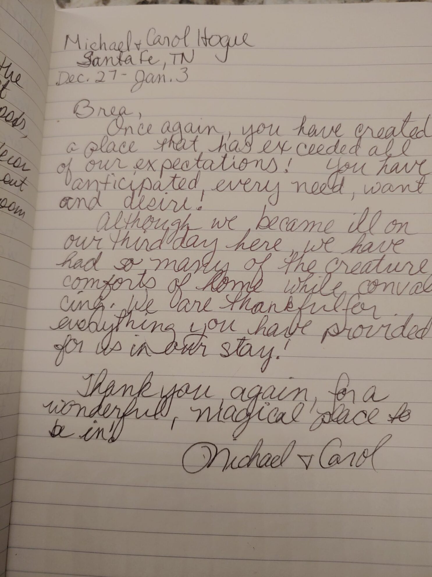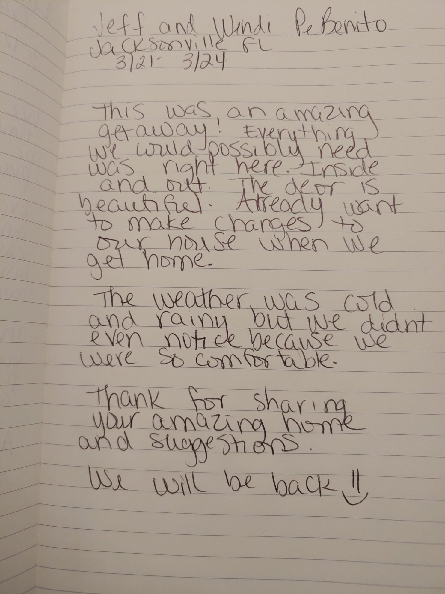 Thank you Janet & Greg, I loved having you as my guest. I hope to hear from you soon. Thanks for caring for the Loverly the way you did.
